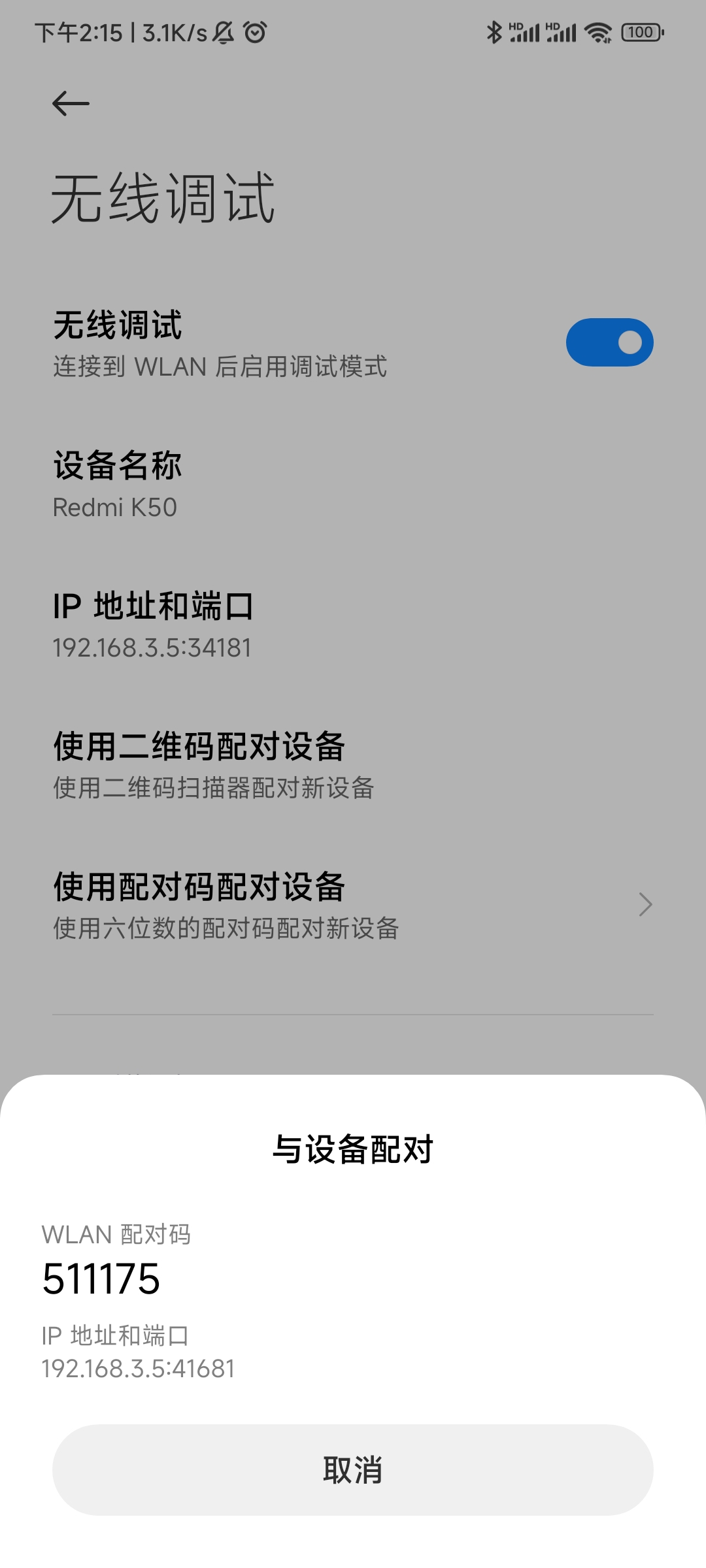 adb pair 手机ip:端口号