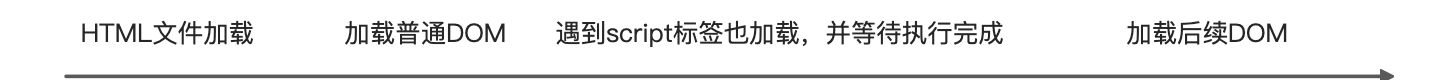 - 最普通的 script 标签,一切都会同步执行,加载到 script 标签之后会等待 script 资源加载完成并执行完成才会加载后面的 DOM